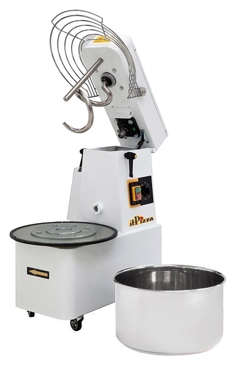 Тестомесильная машина ITPIZZA M-30-С 3Ф используется на предприятиях пищевой промышленности, общественного питания и торговли для замешивания различных видов теста. Модель оснащена съемной поворотной дежой, подъемной траверсой с месильным органом в форме спирали, стержневым отсекателем и электромеханической панелью управления. Корпус выполнен из металла с антикоррозийным покрытием белого цвета, дежа, месильный орган, отсекатель и решетка – из нержавеющей стали.