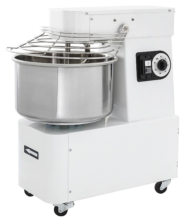 Тестомесильная машина Prismafood IBM 20 используется на предприятиях пищевой промышленности, общественного питания и торговли для замешивания различных видов теста. Модель оснащена несъемной поворотной дежой, месильным органом в форме спирали и кнопочной панелью управления. Корпус выполнен из металла с антикоррозийным покрытием белого цвета, дежа, решетка, центральный стержень и месильный орган – из нержавеющей стали.