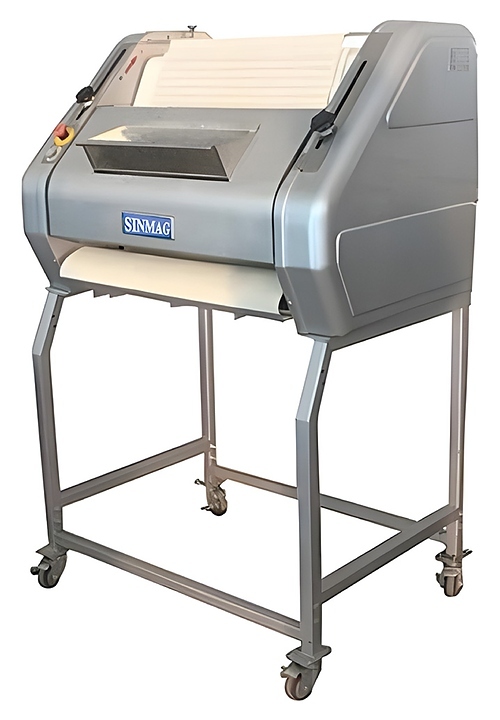 Тестозакаточная машина Sinmag SM-380B используется на предприятиях пищевой промышленности, общественного питания и торговли для формования батонных изделий. Модель оснащена 2 парами раскатывающих валков и прижимной закатывающей доской, давление которой можно регулировать.