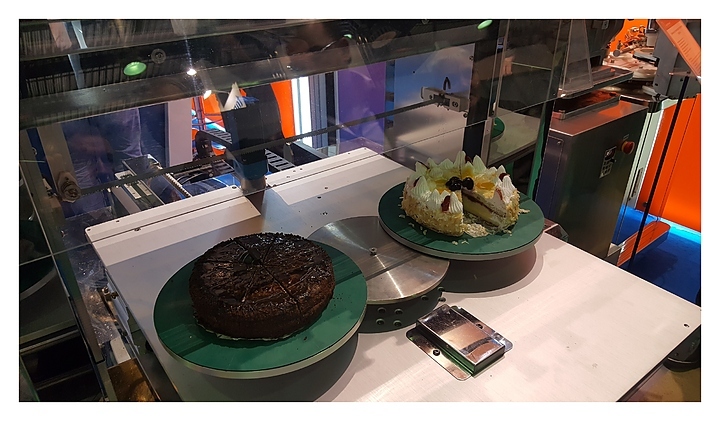 - Индуктивная система подогрева ножей до температуры 100 °C обеспечивает ровное прорезание твердой глазури, шоколада и других аналогичных составов