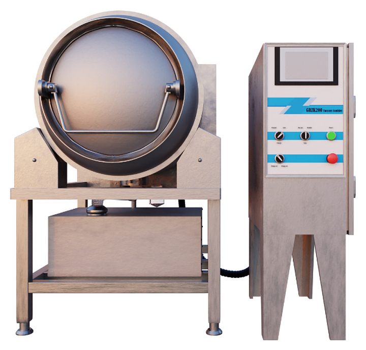 Вакуумный массажер Hualian GRZK200 используется на предприятиях общественного питания и торговли для маринования различных видов мяса и птицы, кроме того массажер значительно ускоряет операцию посола, улучшает вкусовые и физические показатели сырья. Модель оснащена современным PLC-контроллером, регулируемой скоростью вращения барабана и сенсорной панелью управления. Массажер выполнен из высококачественной пищевой нержавеющей стали.