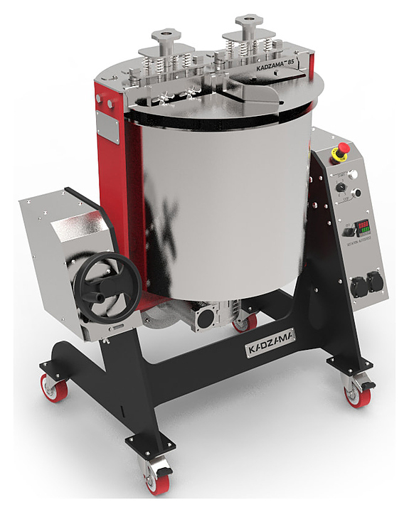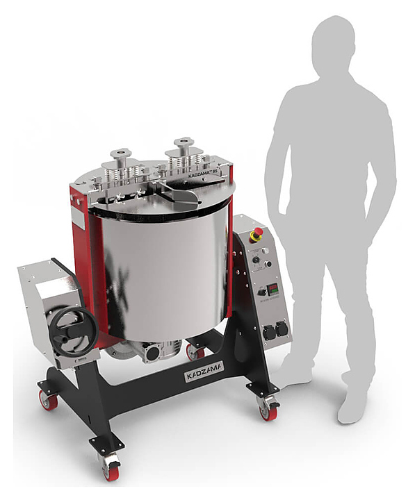 Меланжер Kadzama 85 кг предназначен для перетирания какао-бобов, сахара, орехов и других твердых ингредиентов до однородной массы на предприятиях общественного питания и торговли. Модель оснащена каменными жерновами, съемными перемешивающими скребками и чашей с крышкой. Корпус выполнен из стали, чаша - из нержавеющей стали AISI 304 с гранитным дном.