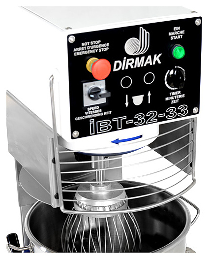 Планетарный миксер Dirmak IBT 32 33 используется на предприятиях общественного питания и торговли, в пекарнях и кондитерских для замеса теста различной влажности, взбивания сливок, интенсивного перемешивания, быстрого и однородного смешивания ингредиентов без мертвых зон. Модель оснащена эргономичной электромеханической панелью управления. Дежа выполнена из нержавеющей стали AISI 304, защитная решетка - из нержавеющей стали, корпус - покрыт порошковой краской.