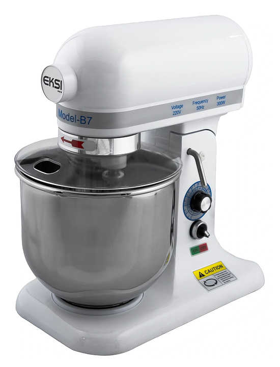 Планетарный миксер EKSI B7 предназначен для замеса различных видов теста, приготовления кремов и других кондитерских масс на предприятиях общественного питания и торговли. Планетарное вращение месильного органа вокруг своей оси и оси дежи позволяет осуществлять более равномерный промес тестовой массы по всему объему дежи. Модель оснащена защитной крышкой. Корпус и чаша выполнены из нержавеющей стали.