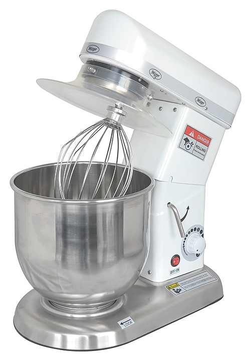 Планетарный миксер Hualian B7 предназначен для замеса различного вида теста жидкой консистенции, в том числе белкового, заварного, дрожжевого, бисквитного, а также для приготовления пюре, майонеза, различных соусов, взбитых сливок на предприятиях пищевой промышленности, общественного питания и торговли. Модель оснащена пластиковой защитной крышкой, которая обеспечивает безопасность и препятствует разбрызгиванию продукта. Дежа выполнена из нержавеющей стали.