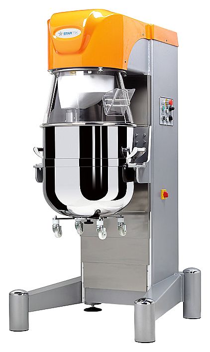 Напольный планетарный миксер Starmix PL120NVAF предназначен для взбивания кондитерских масс: кремов, суфле, муссов, а также бисквитного, дрожжевого, песочного, блинного, заварного теста на предприятиях общественного питания и торговли, в пекарнях и кондитерских. Модель оснащена электромеханической панелью управления. Корпус выполнен из окрашенного металла, защитный кожух - из пластика.