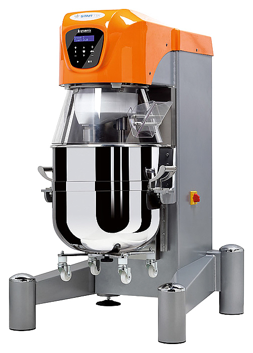Напольный планетарный миксер Starmix PL80NVAHF предназначен для взбивания кондитерских масс: кремов, суфле, муссов, а также бисквитного, дрожжевого, песочного, блинного, заварного теста на предприятиях общественного питания и торговли, в пекарнях и кондитерских. Модель оснащена сенсорной панелью управления с дисплеем. Корпус выполнен из окрашенного металла, защитный кожух - из пластика.