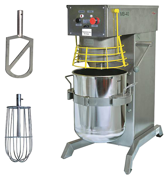 Планетарный миксер ТОРГМАШ МВ-40 используется на предприятиях общественного питания, торговли, в пекарнях и кондитерских для взбивания кондитерских смесей, замешивания жидкого теста, взбивания картофельного пюре, мусса и самбука. Корпус выполнен из стали с покрытием порошковой краской Машина упаковывается в деревянный ящик.