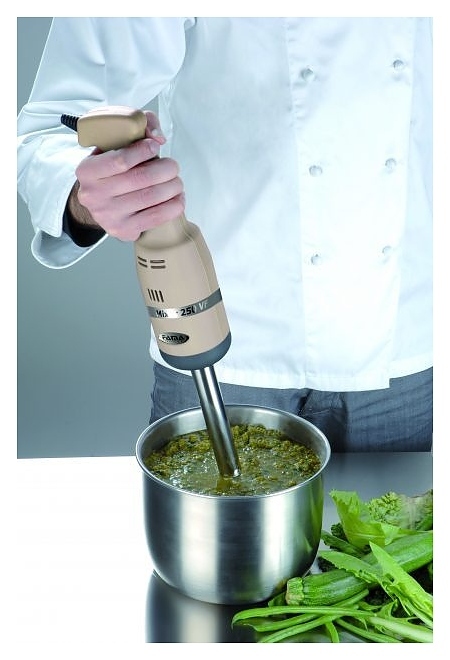 Ручной миксер Fama Mixer 250 VV предназначен для приготовления супов-пюре, майонеза, муссов, картофельного и овощного пюре, взбивания жидкого теста для блинчиков на предприятиях общественного питания и торговли. Корпус выполнен из пластика, съемная насадка и все контактирующие с пищевыми продуктами детали - из нержавеющей стали.