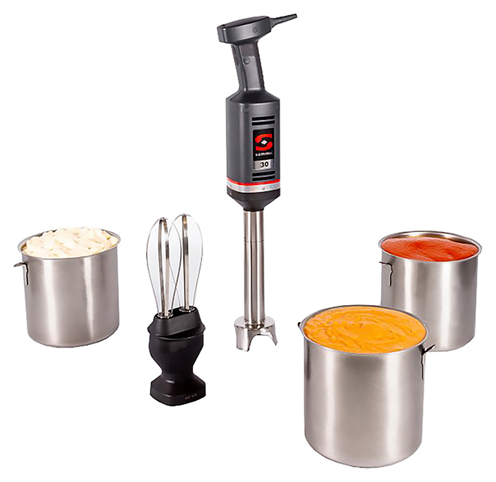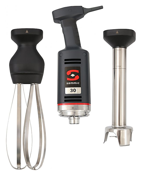 Ручной миксер Sammic MB-31 предназначен для взбивания, смешивания, измельчения продуктов питания на предприятиях общественного питания и торговли. Модель оснащена регулятором скорости, двухцветным световым индикатором, указывающим состояние аппарата и эргономичной противоскользящей ручкой. Y-образный нож с долговечной режущей кромкой выполнен из закаленной стали.