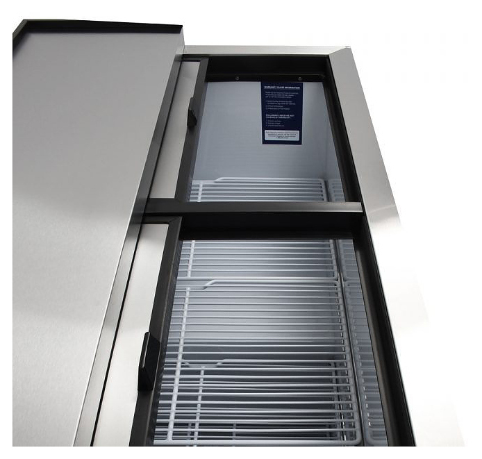 Барный морозильник Turbo air TBC-50SB-GF предназначен для охлаждения и замораживания напитков на предприятиях общественного питания и торговли. Модель оснащена 5 полками, 2 дверьми и 4 колесами. Корпус выполнен из нержавеющей стали, покрытой износостойким черным винилом, с применением полиуретановой теплоизоляции высокой плотности и уплотнения из теплоэффективного ABS-пластика, внутренняя поверхность - из оцинкованной стали, полки - из толстой стальной проволоки с виниловым покрытием.