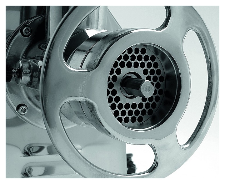Мясорубка Fama TI 22 FTS 116UE предназначена для измельчения мяса и рыбы на фарш, повторного измельчения котлетной массы и набивки колбас на предприятиях общественного питания и торговли. Корпус, решетки и самозатачивающийся нож выполнены из нержавеющей стали, шнек - из сплава никеля.