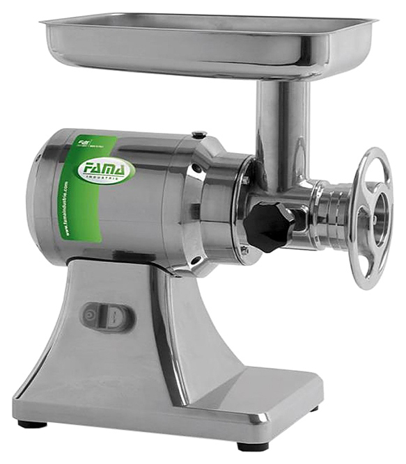 Мясорубка Fama TS 12 FTS 106UE предназначена для измельчения мяса и рыбы на фарш, повторного измельчения котлетной массы и набивки колбас на предприятиях общественного питания и торговли. Корпус выполнен из литого под давлением алюминиевого сплава, решетка и самозатачивающийся нож - из нержавеющей стали, шнек - из сплава никеля.