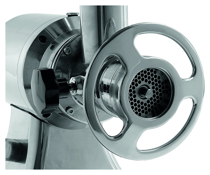 Мясорубка Fama TS 12 FTS 126UE предназначена для измельчения мяса и рыбы на фарш, повторного измельчения котлетной массы и набивки колбас на предприятиях общественного питания и торговли. Корпус выполнен из литого под давлением алюминиевого сплава, решетка и самозатачивающийся нож - из нержавеющей стали, шнек - из сплава никеля.