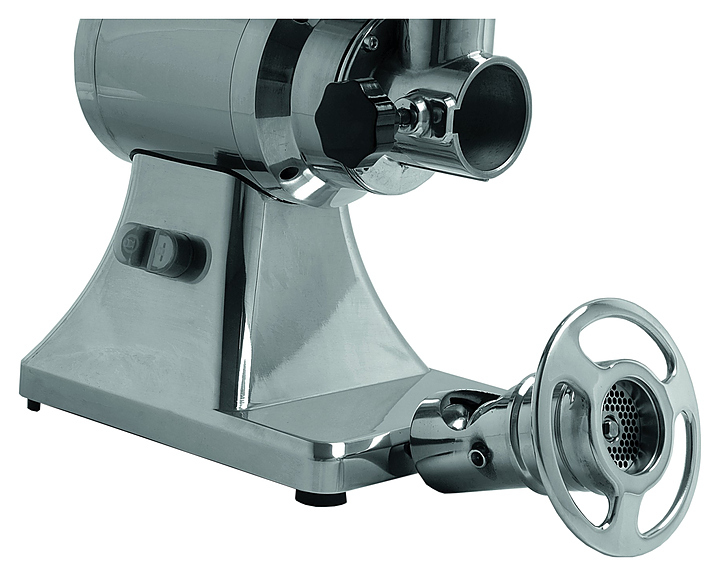 Мясорубка Fama TS 12 FTS 127UE предназначена для измельчения мяса и рыбы на фарш, повторного измельчения котлетной массы и набивки колбас на предприятиях общественного питания и торговли. Корпус выполнен из литого под давлением алюминиевого сплава, решетка и самозатачивающийся нож - из нержавеющей стали, шнек - из сплава никеля.