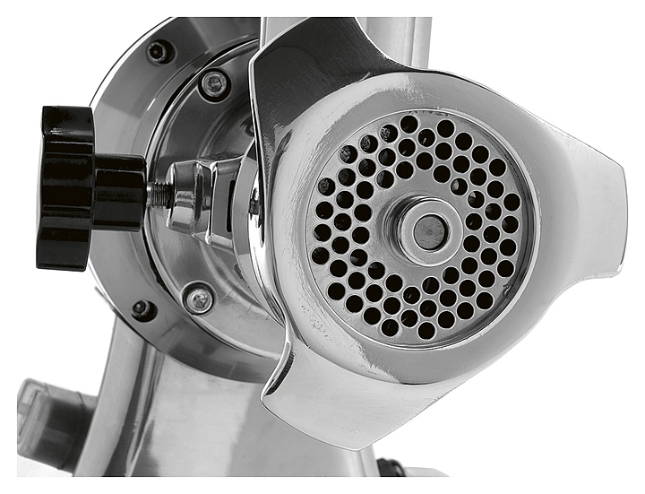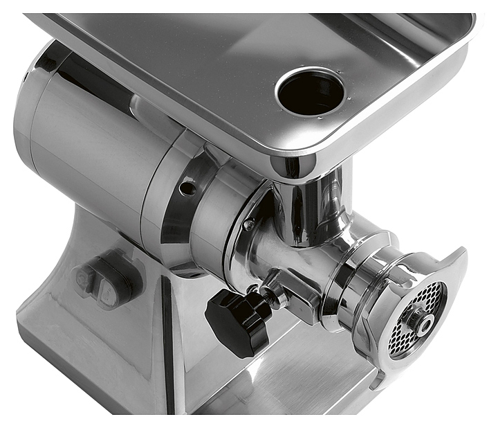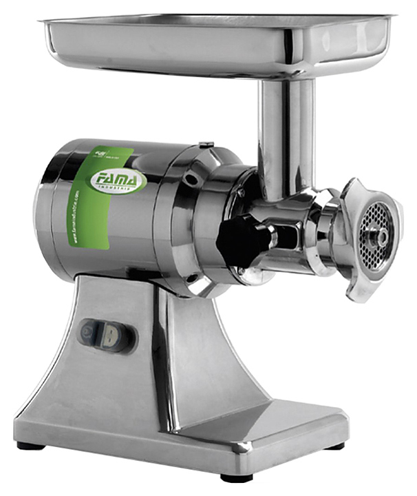 Мясорубка Fama TS 22 FTS 117E предназначена для измельчения мяса и рыбы на фарш, повторного измельчения котлетной массы и набивки колбас на предприятиях общественного питания и торговли. Корпус выполнен из литого под давлением алюминиевого сплава, решетка и самозатачивающийся нож - из нержавеющей стали, шнек - из сплава никеля.