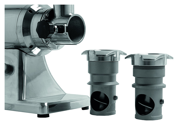 В комплект поставки входят пластиковый толкатель, лоток для подачи мяса и приемный лоток.