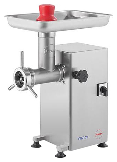 Мясорубка Feuma TW-R 70 предназначена для измельчения мяса и рыбы на фарш, повторного измельчения котлетной массы и набивки колбас на предприятиях общественного питания и торговли. Модель оснащена электромеханической системой управления и обратным реверсом. Корпус, решетки и ножи выполнены из нержавеющей стали.