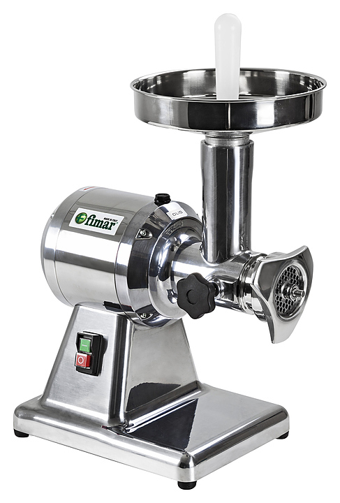 Мясорубка FIMAR 12B предназначена для измельчения мяса и рыбы на фарш, повторного измельчения котлетной массы и набивки колбас на предприятиях общественного питания и торговли. Корпус выполнен из полированного алюминия, воронка - из нержавеющей стали.