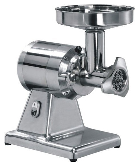 Мясорубка FIMAR 12/TS предназначена для измельчения мяса и рыбы на фарш, повторного измельчения котлетной массы и набивки колбас на предприятиях общественного питания и торговли. Модель оснащена съемным режущим узлом, зубчатым редуктором в масляной ванне. Внутренние детали съемные, что удобно для их мытья в посудомоечной машине. Корпус выполнен из полированного алюминия, самозатачивающийся нож, решетка, бункер и извлекаемый режущий узел - из нержавеющей стали.