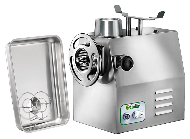 Мясорубка FIMAR 32/RS предназначена для измельчения мяса и рыбы на фарш, повторного измельчения котлетной массы и набивки колбас на предприятиях общественного питания и торговли. Модель оснащена зубчатым редуктором в масляной ванне, реверсом и предохранительными микровыключателями. Внутренние детали съемные, что удобно для их мытья в посудомоечной машине. Корпус, бункер, решетка, съемный режущий узел и самозатачивающийся нож выполнены из нержавеющей стали.