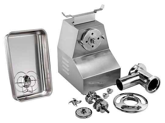 Мясорубка FIMAR 32/TN предназначена для измельчения мяса и рыбы на фарш, повторного измельчения котлетной массы и набивки колбас на предприятиях общественного питания и торговли. Модель оснащена зубчатым редуктором в масляной ванне, реверсом и предохранительными микровыключателями. Внутренние детали съемные, что удобно для их мытья в посудомоечной машине. Корпус, бункер, решетка, извлекаемый режущий узел и самозатачивающийся нож выполнены из нержавеющей стали.