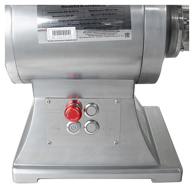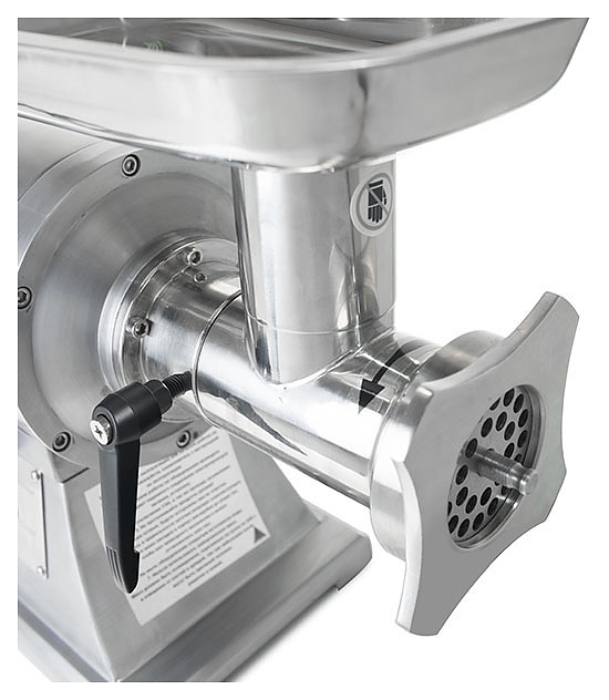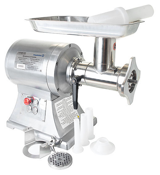 Мясорубка Foodatlas AL-12 используется на предприятиях общественного питания и торговли для измельчения мяса и рыбы при производстве фарша. Сменные решетки с отверстиями различного диаметра позволяют регулировать степень измельчения сырья. Корпус и все детали выполнены из нержавеющей стали.