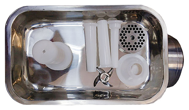 В комплект поставки входят 1 запасной нож, 1 запасная решетка и толкатель.