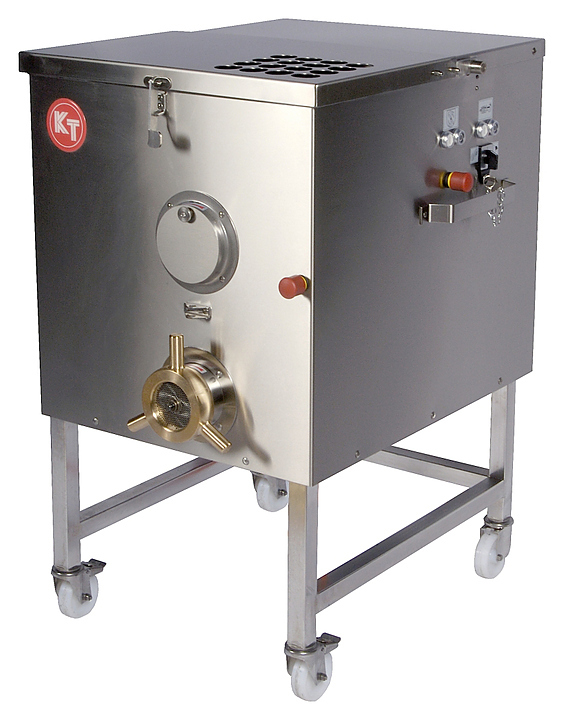 Мясорубка Koneteollisuus Oy (KT) LM-98/А предназначена для измельчения мяса и рыбы на фарш, повторного измельчения котлетной массы и набивки колбас на предприятиях пищевой промышленности и торговли. Модель оснащена 2 двигателями: для измельчения и для смешивания, равномерным ходом и низким уровнем шума при работе. Корпус выполнен из чугуна, шнек - из алюминия.