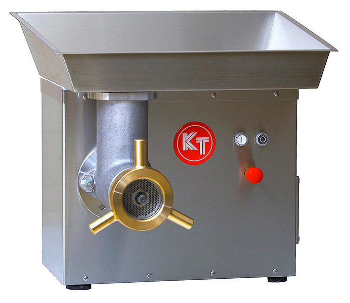 Мясорубка Koneteollisuus Oy (KT) LM-98/P предназначена для измельчения мяса и рыбы на фарш, повторного измельчения котлетной массы и набивки колбас на предприятиях пищевой промышленности и торговли. Модель оснащена мощным двигателем, электромеханической системой управления, кнопкой экстренной остановки, равномерным ходом и низким уровнем шума при работе. Корпус и шнек выполнены из нержавеющей стали.