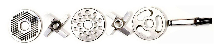 В комплект поставки входят решетки 3 мм и 13 мм, 2 ножа и подрезная решетка.