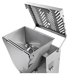 В комплект поставки входят самозатачивающиеся нож и решетка 6 мм из нержавеющей стали, самонесущая конструкция с колесиками из нержавеющей стали с тормозом и инструмент для извлечения винта и решеток.