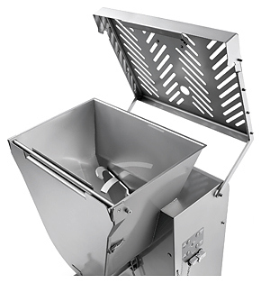 В комплект поставки входят самозатачивающиеся нож и решетка 6 мм из нержавеющей стали, самонесущая конструкция с колесиками из нержавеющей стали с тормозом, инструмент для извлечения винта и решеток, педаль.
