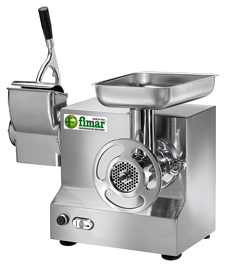 Мясорубка-терка FIMAR 22/AT предназначена для измельчения мяса и рыбы на фарш, повторного измельчения котлетной массы и набивки колбас на предприятиях общественного питания и торговли. Модель оснащена зубчатым редуктором в масляной ванне, микровыключателем на прижимном рычаге терки, нижней защитной решеткой и реверсом. Корпус, бункер, полностью извлекаемый режущий узел и ролик терки выполнены из нержавеющей стали, входное отверстие терки - из полированного алюминия