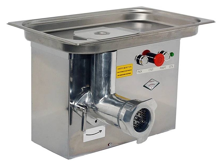 Мясорубка БЕЛТОРГМАШ МИМ-150-01 используется на предприятиях общественного питания, торговли, а также в производственных цехах, деятельность которых связана с выпуском гастрономических товаров, для измельчения мяса и рыбы на фарш, повторного измельчения котлетной массы и набивки колбас. Модель оснащена приводом, съемной чашей и функцией "Реверс", которая позволяет при наматывании жил освободить шнек без дополнительной разборки машин. Корпус выполнен из алюминия, облицовка - из нержавеющей стали.