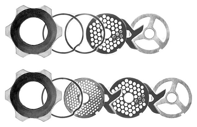 В комплект поставки входят подрезной нож, 2 крестовых ножа и 2 решетки.