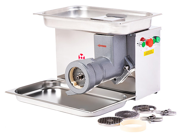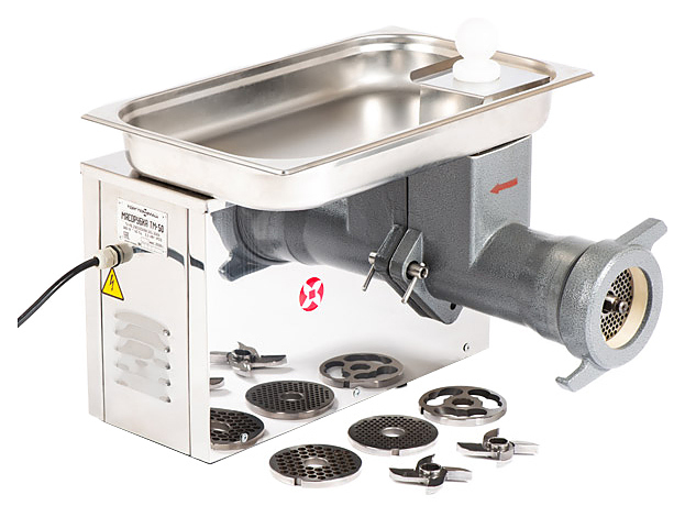 Мясорубка ТОРГТЕХМАШ ТМ-50 используется на предприятиях общественного питания и торговли для измельчения мяса и рыбы при производстве фарша, а также повторного измельчения котлетной массы и набивки колбас. Модель оснащена функцией Реверс, исключающей необходимость разборки мясорубки при попадании костей в горловину и наматывании жил на шнек. Все детали, контактирующие в процессе работы с продуктами, выполнены из безопасной нержавеющей стали.