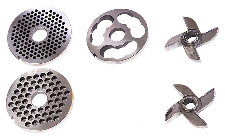 В комплект поставки входят подрезной нож, 2 крестовых ножа и 2 решетки.