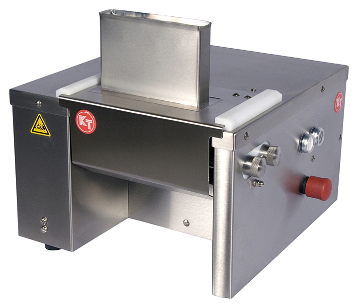 Мясорыхлитель-тендерайзер Koneteollisuus Oy (KT) PK предназначен для рыхления мяса и рыбы, изготовления отбивных и стейков на предприятиях пищевой промышленности и торговли. Мотор останавливается автоматически, если кожух снимается при работающем двигателе. Ножи и предохранительная крышка съемные и моются в посудомоечной машине. Корпус изготовлен из нержавеющей стали.