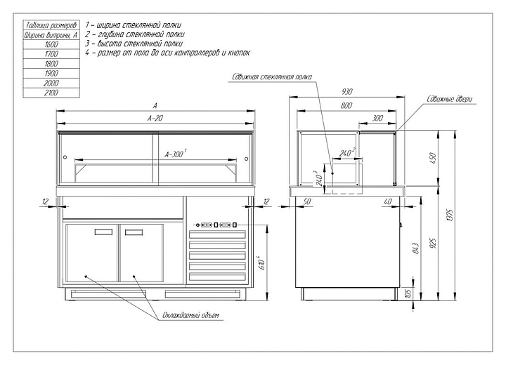 - Выкладка десертов осуществляется на выдвижную стеклянную полку и столешницу