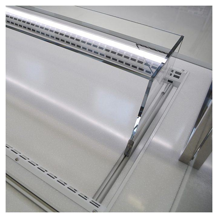 - Для хранения запаса продукции в витрину встроен холодильный объем (температура внутри накопителя: +2 … +8°С)