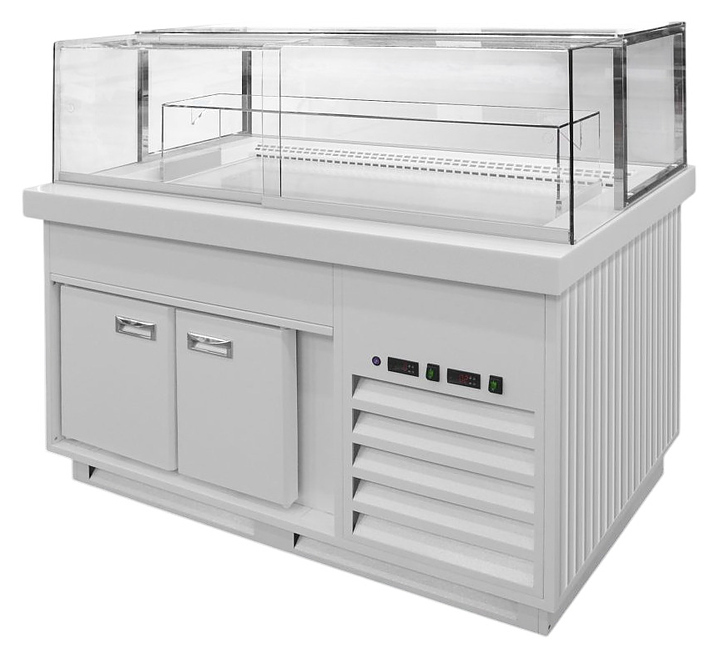 - Для хранения запаса продукции в витрину встроен холодильный объем (температура внутри накопителя: +2 … +8°С)