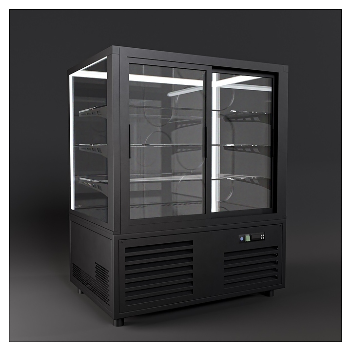 Напольная холодильная витрина Finist FRESH JOBS J-147-126 предназначена для экспозиции и временного хранения десертов, выпечки и кондитерских изделий на предприятиях общественного питания и торговли. Модель оснащена электронным управлением с дисплеем, 3 полками и дверцами-купе. Ночная шторка обеспечивает сохранение холода в витрине в ночное время и снижает энергопотребление. Корпус выполнен из крашеной стали, полки и поддон - из нержавеющей зеркальной стали, боковые панели и дверцы-купе из стеклопакета.