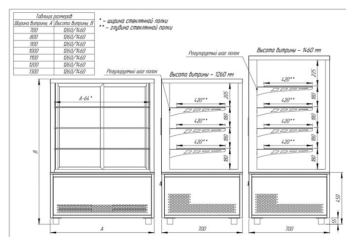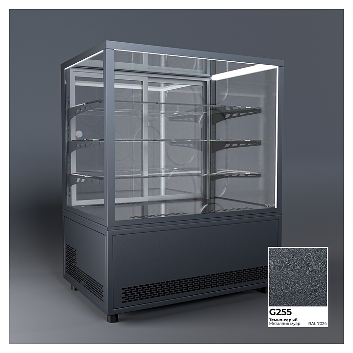 Напольная холодильная витрина Finist FRESH JOBS J-157-126 предназначена для экспозиции и временного хранения десертов, выпечки и кондитерских изделий на предприятиях общественного питания и торговли. Модель оснащена электронным управлением с дисплеем, 3 полками и дверцами-купе. Ночная шторка обеспечивает сохранение холода в витрине в ночное время и снижает энергопотребление. Корпус выполнен из крашеной стали, полки и поддон - из нержавеющей зеркальной стали, боковые панели и дверцы-купе из стеклопакета.