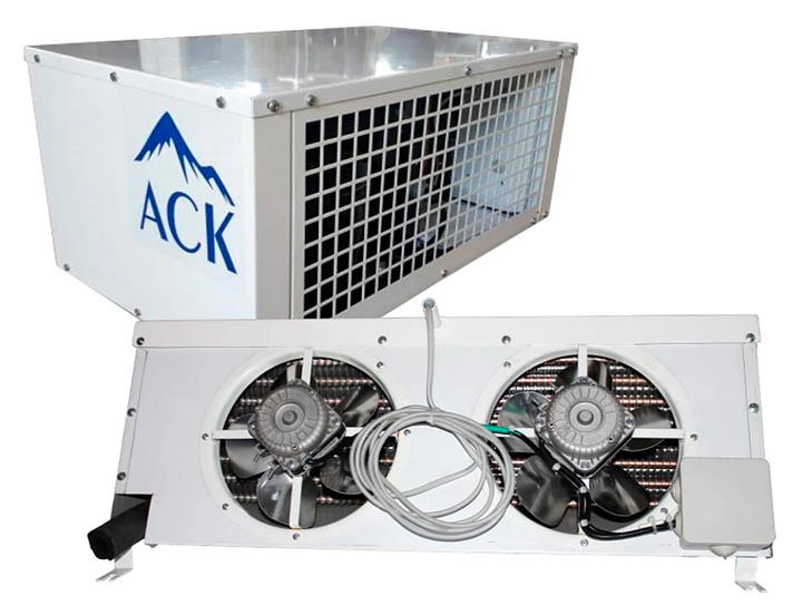 Напольно-потолочная сплит-система АСК-Холод ССп-11 предназначена для поддержания необходимого температурного режима в холодильных камерах на предприятиях пищевой промышленности, общественного питания и торговли. Модель оснащена компрессорно-конденсаторным блоком, который размещается снаружи холодильной камеры и воздухоохладителем внутри камеры, соединенными между собой теплоизолированными медными трубками, по которым циркулирует хладагент и выводится конденсат, а также кабелем питания и управления. Корпус изготовлен из оцинкованной стали белого цвета толщиной 0,9-1,2 мм с полимерным покрытием в защитной пленке, трубы конденсатора и испарителя - из меди, ребра - из алюминиевого сплава.