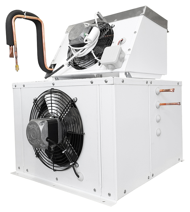 Напольно-потолочная сплит-система АСК-Холод ССп-13 предназначена для поддержания необходимого температурного режима в холодильных камерах на предприятиях пищевой промышленности, общественного питания и торговли. Модель оснащена компрессорно-конденсаторным блоком, который размещается снаружи холодильной камеры и воздухоохладителем внутри камеры, соединенными между собой теплоизолированными медными трубками, по которым циркулирует хладагент и выводится конденсат, а также кабелем питания и управления. Корпус изготовлен из оцинкованной стали белого цвета толщиной от 0,9 до 1,2 мм с полимерным покрытием в защитной пленке, трубы конденсатора и испарителя - из меди, ребра - из алюминиевого сплава.