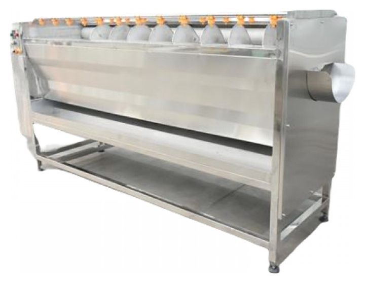 Овощечистка Hualian SX1500B используется на предприятиях пищевой промышленности, общественного питания и торговли для автоматической мойки и очистки от кожуры корнеплодов, а также твердых овощей и фруктов путем их трения о вращающиеся валы. Модель оснащена расположенным сверху трубопроводом с форсунками для подачи воды, рабочей камерой с 9 щеточными валами и электромеханической панелью управления. Щетина валов выполнена из нейлона.