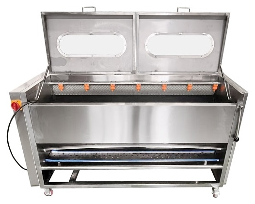 Овощечистка Roal Veget СХJ180 используется на предприятиях пищевой промышленности, общественного питания и торговли для автоматической мойки и очистки от кожуры корнеплодов, а также твердых овощей и фруктов путем их трения о вращающиеся валы. Модель оснащена электромеханической панелью управления, расположенным сверху трубопроводом с форсунками для подачи воды, рабочей камерой с валами: 4 абразивными и 3 щеточными. Корпус выполнен из нержавеющей стали, обмотка двигателя – из меди.