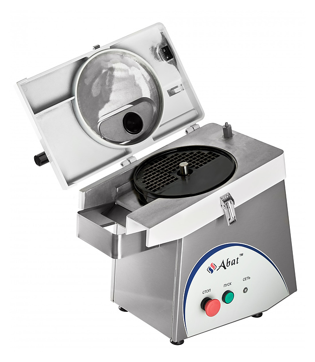 Овощерезка Abat МКО-50 используется на предприятиях общественного питания и торговли для нарезки овощей, фруктов, грибов, твердого сыра и колбас. Модель оснащена системой отключения двигателя при подъеме ручки и открытии крышки.