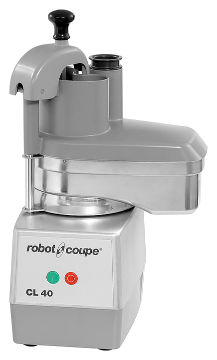 Овощерезка Robot Coupe CL40 используется на предприятиях общественного питания и торговли нарезки овощей, фруктов, грибов, твердого сыра и колбас и дальнейшего использования их в качестве ингредиентов для приготовления супов, салатов, гарниров и пр. Модель оснащена 2 загрузочными отверстиями: большой D-образной воронкой для нарезки объёмных овощей (вмещает до 7 помидоров) и круглой - для длинных и нежных.